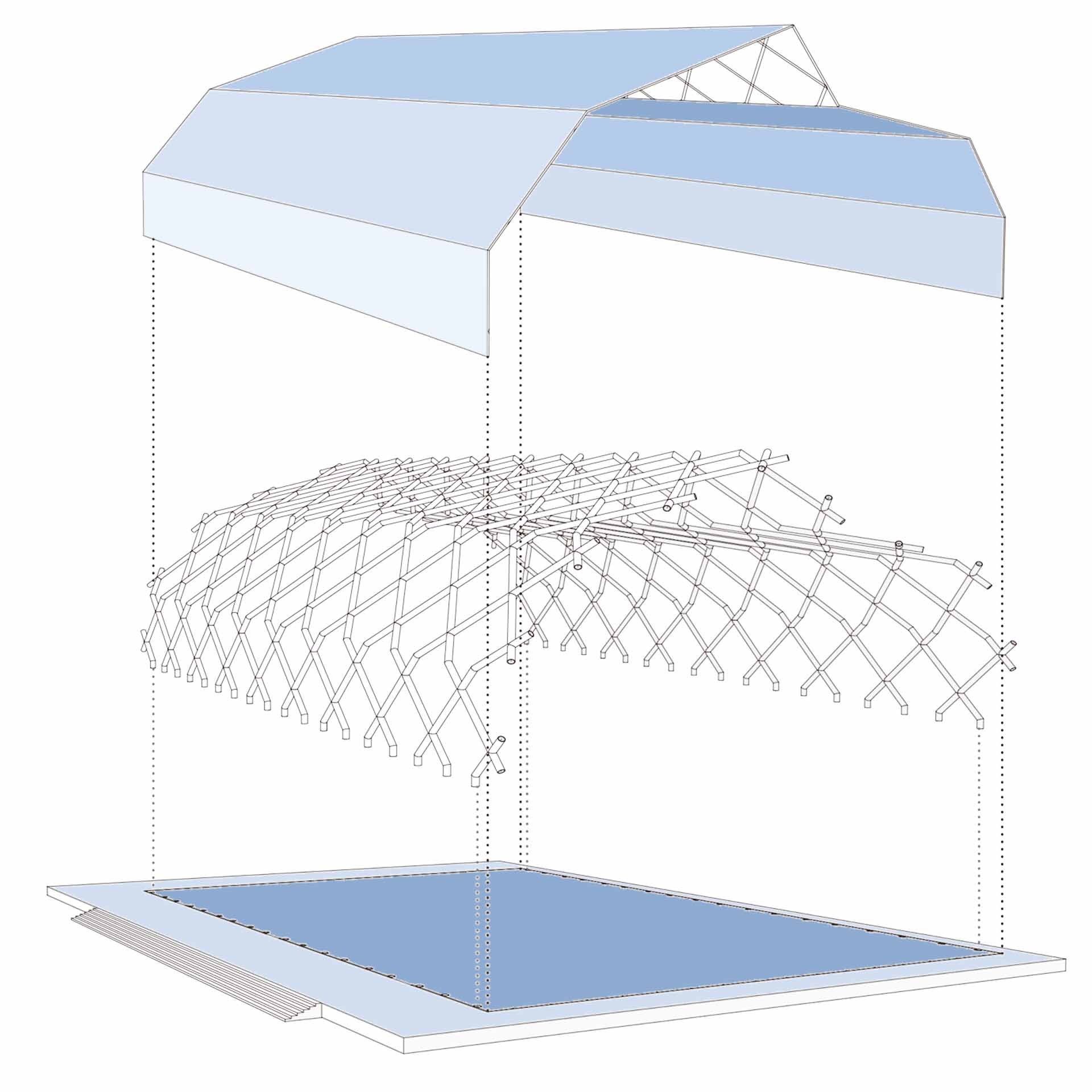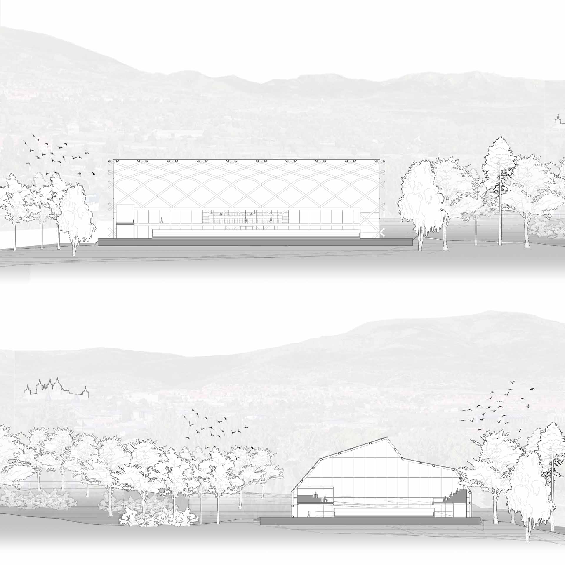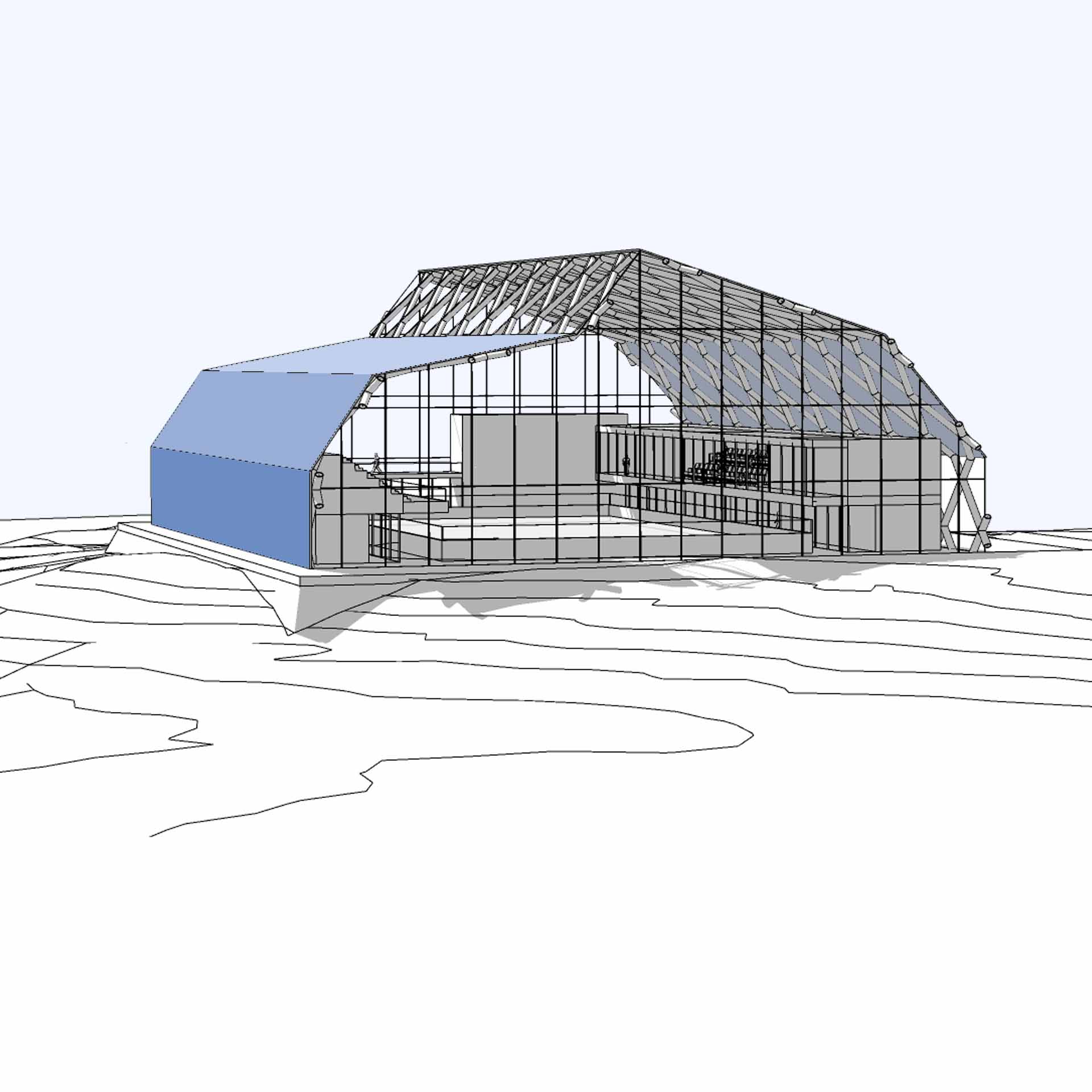 Este caparazón albergará un Centro Deportivo de Patinaje sobre hielo, con las medidas estipuladas para el patinaje olímpico, además de vestuarios, cafetería, salas de máquinas y todo aquel equipamiento necesario para ser funcional.